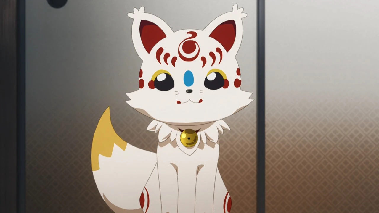 in a move that's probably 90% instinct and 10% hehe, there's a white fox curling up onto the couch next to them. ]