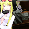 [ She lets go of the power, and instead of the normal sized Kyoko Kuremi, Saya gets to see Kyoko as this 10 foot black, robot with golden trim. ]